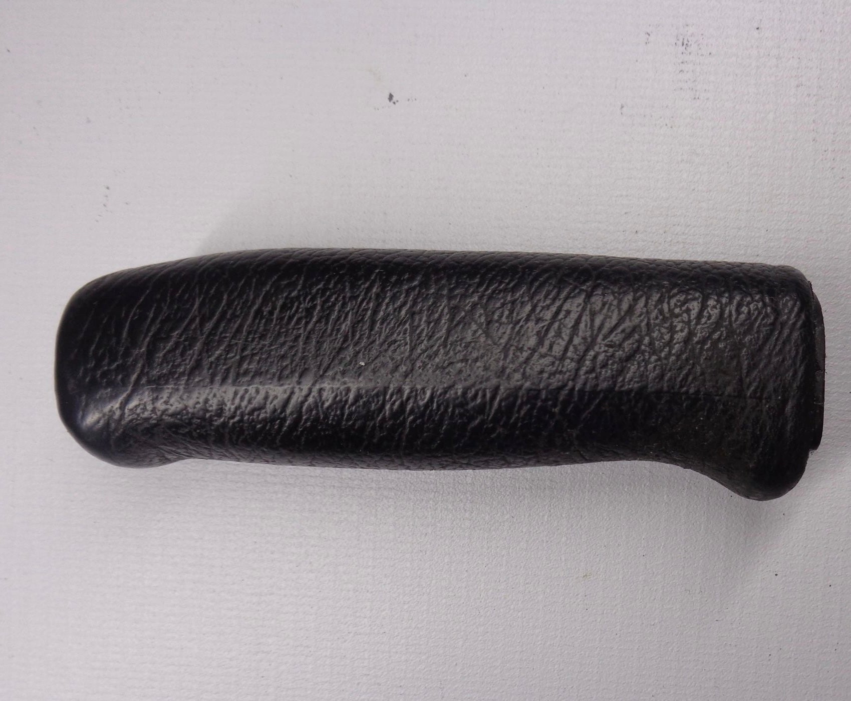 Used factory emergency brake lever handle grip for NA and NB Mazda Miata. This is the black grip that slides over the e brake handle. Does not include the black plastic spacer that goes behind the handle grip. Product may be faded or scratched. Part number FB01-44-034. Also known as the parking brake or hand brake handle grip. Fits 1990-2005.
