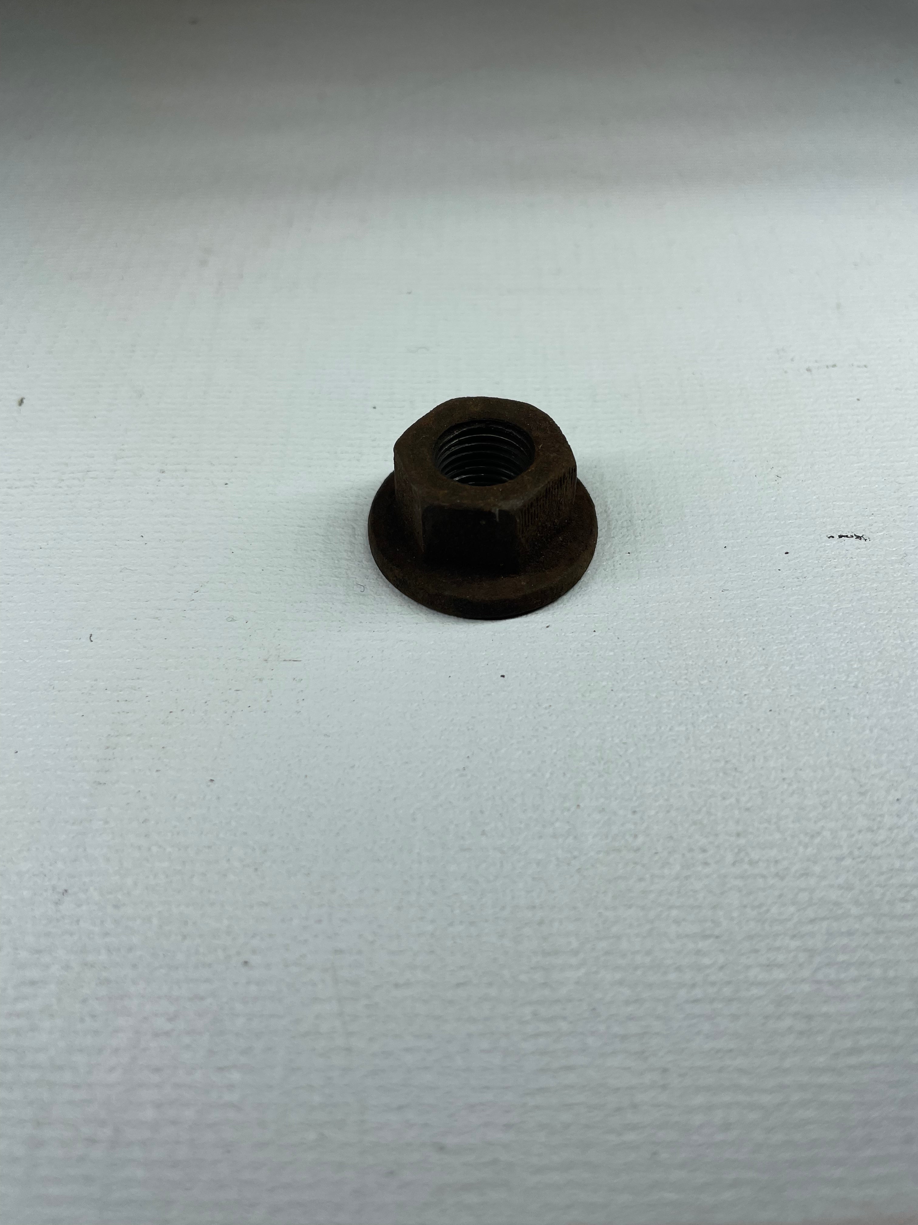 Used factory rear subframe hardware for NA or NB Mazda Miata. This is one of the four nuts or one of the two bolts that attach the rear subframe to the bottom of the body. Part numbers FB01-34-091A (nut) or NA01-28-092 (bolt). Sold individually as one nut or one bolt. Fits 1990-2005.