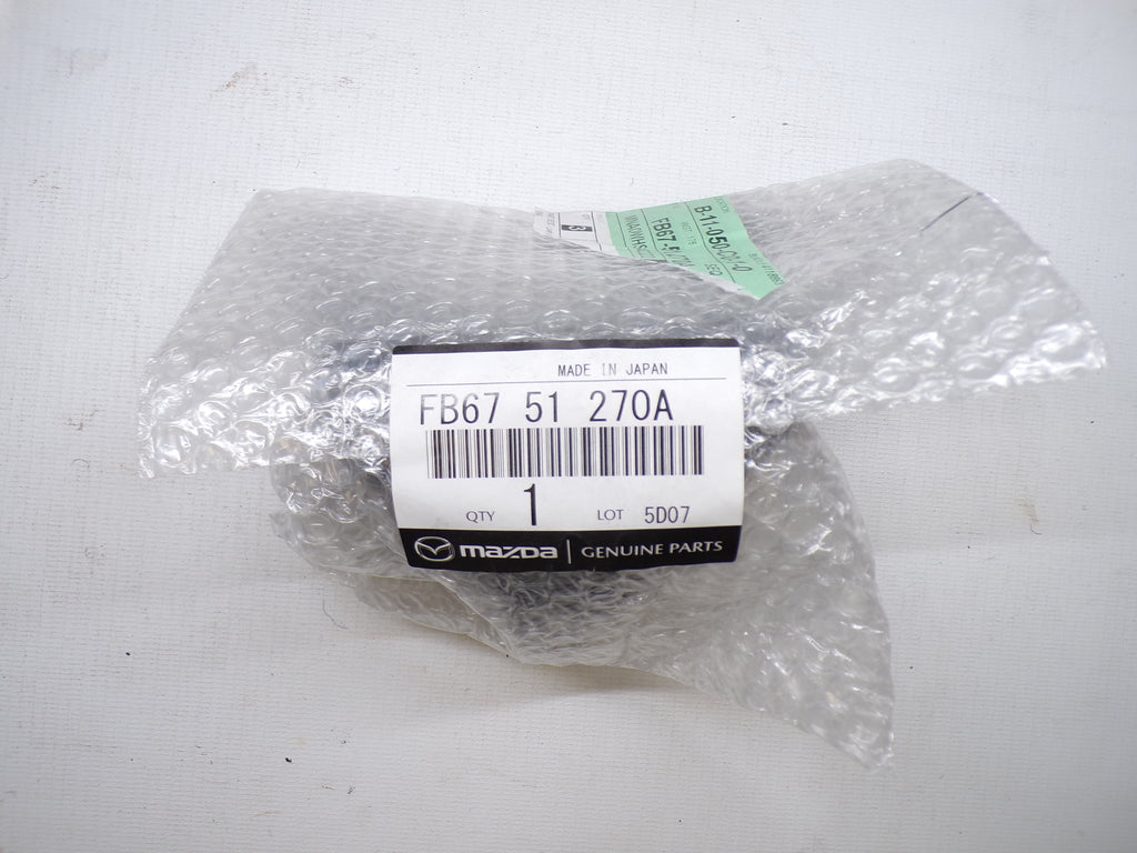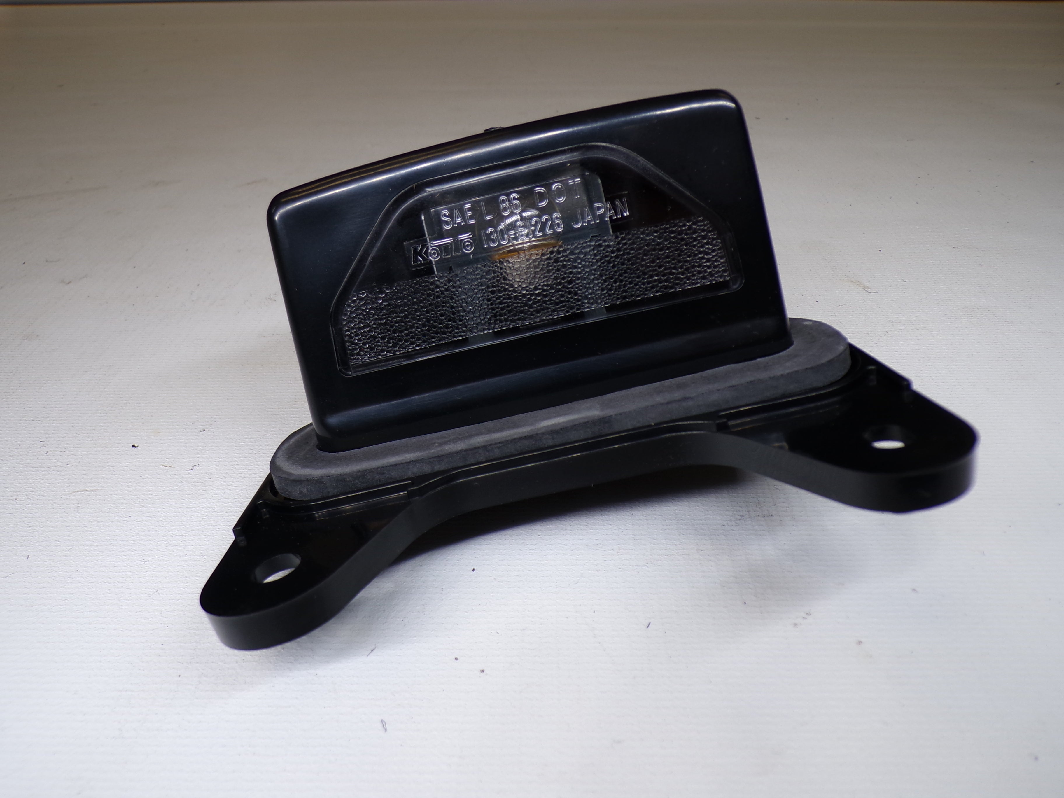 New factory Mazda OEM rear license plate light for NA Mazda Miata. This is one of the two black plastic license plate lights that mount underneath the rear finish panel on either side of the license plate. Part number FB67-51-270A. Bulb and gasket are included. Fits 1990-1997. Sold individually as one license plate light.
