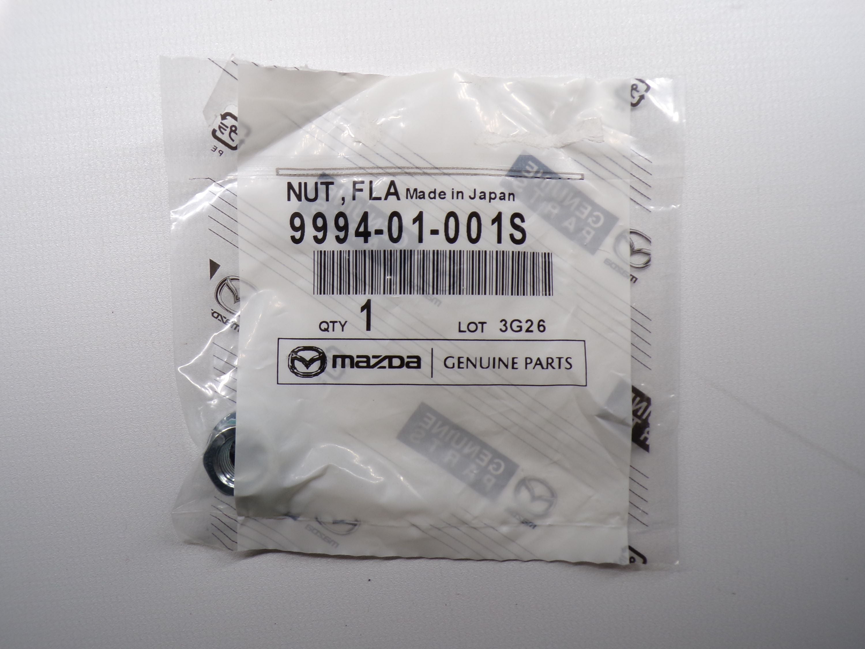 New factory Mazda OEM sway bar end link nut for NB Mazda Miata. This is one of the two nuts that attach each of the four metal links to the front or rear sway bars and then to the control arms. Nut only. Part number 9994-01-000 which has changed to 9994-01-001S. Fits 1999-2005. Sold individually as one nut.