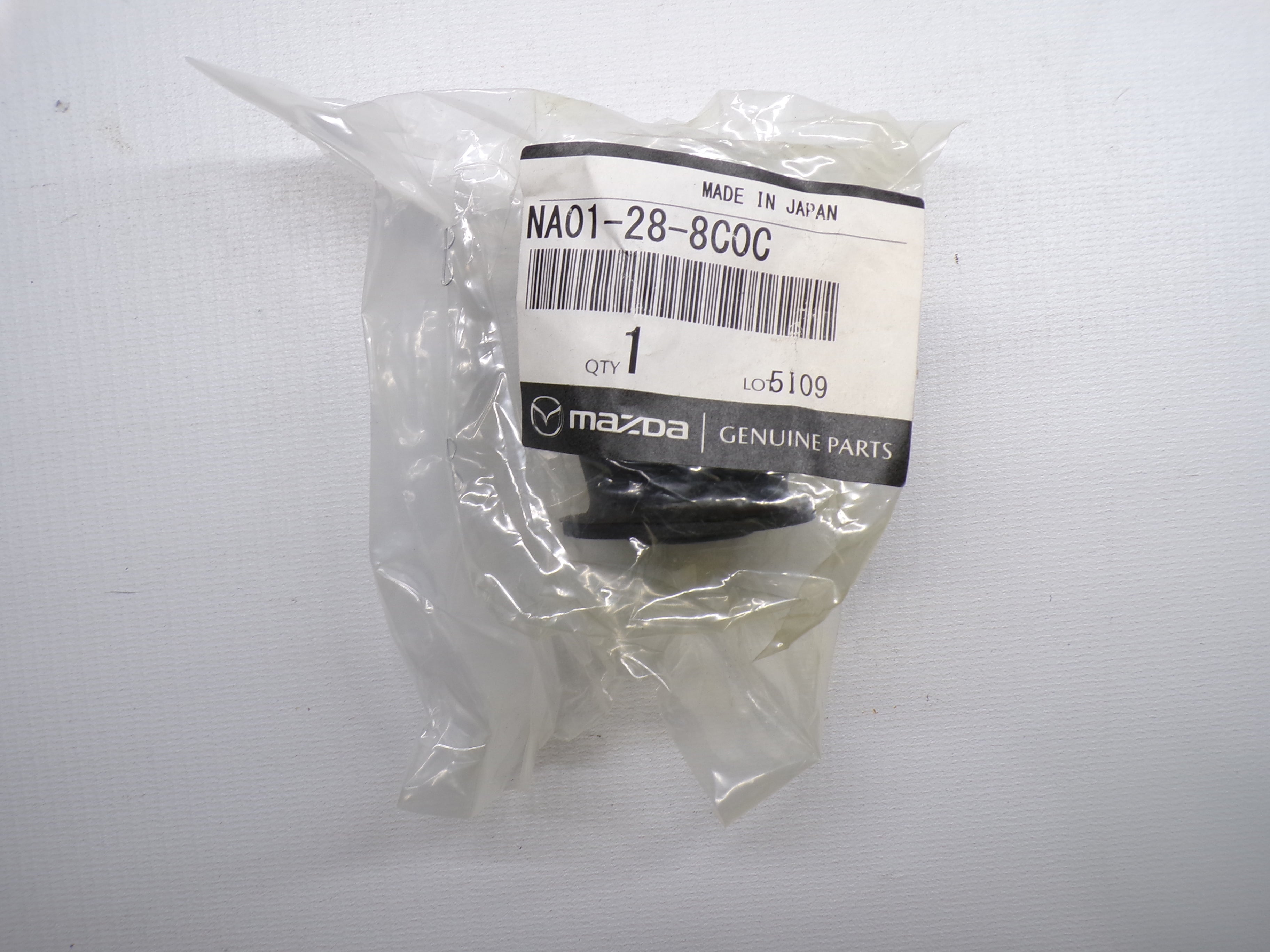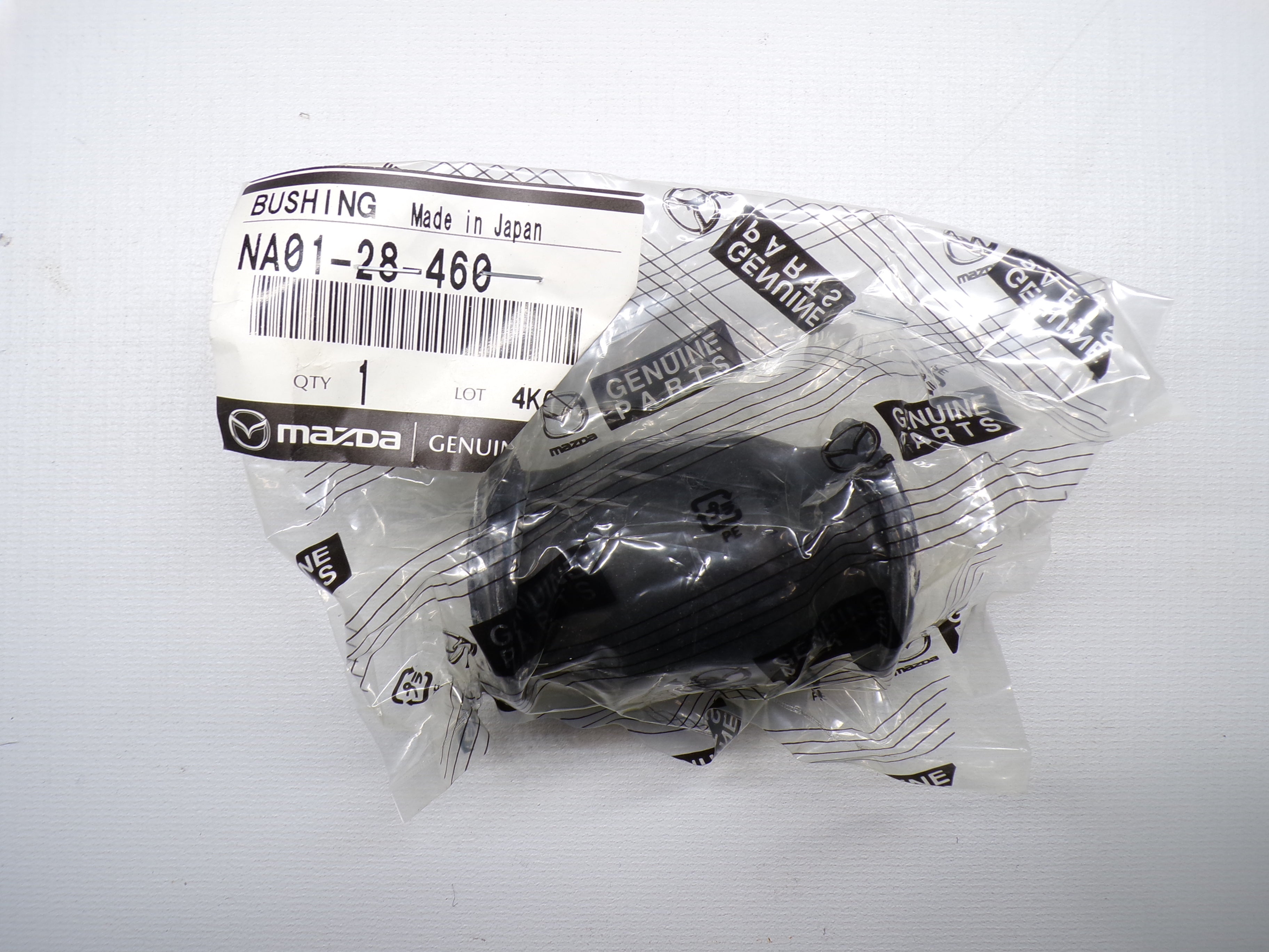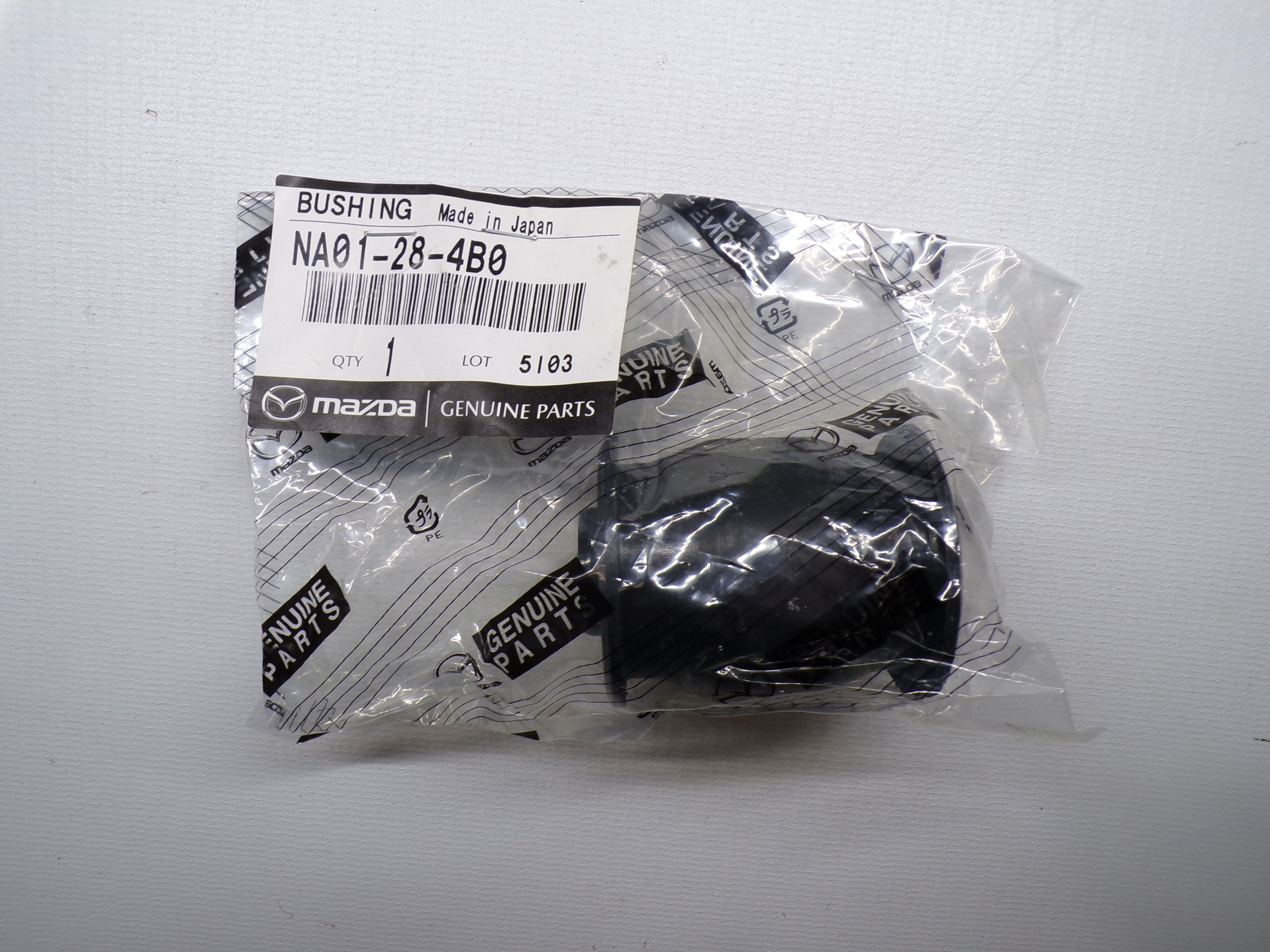 New factory Mazda OEM control arm bushing for NB Mazda Miata. This is the rubber replacement bushing for either the front upper, front lower, rear upper, or rear lower control arms where they connect to either the spindle or the subframe. Bushings are sold individually so you will need to choose the type of bushing location. Part numbers for each individual item are NA01-34-460A (front lower control arm inner front bushing), NA01-34-490 (front lower control arm inner rear bushing), NC10-34-480 (front upper control arm 1 of 2 inner bushings), NA01-28-460 (rear lower control arm 1 of 2 inner bushings), NA01-28-4D0 (rear lower control arm outer front bushing), NA01-28-4B0 (rear lower control arm outer rear bushing), or NA01-28-8C0C (rear upper control arm outer bushing or also 1 of 2 inner bushings). Fits 1999-2005. Sold individually as one single bushing. Choose bushing location and then quantity.