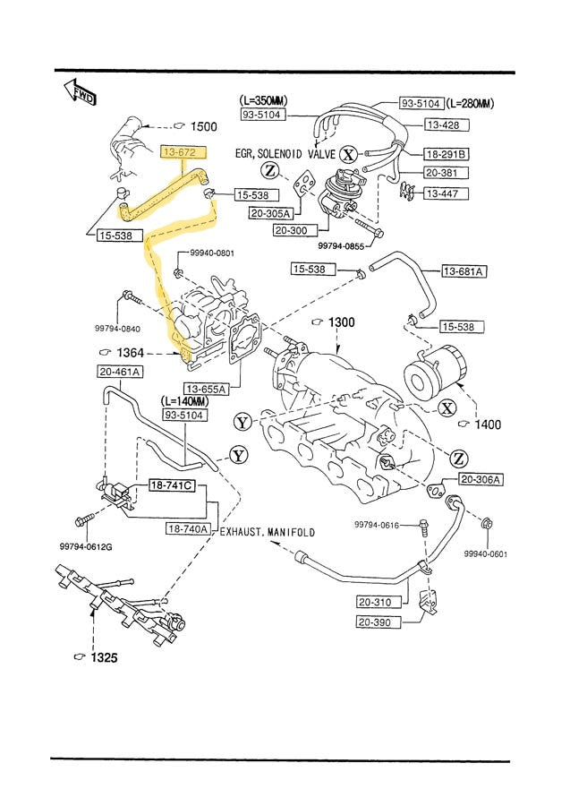New factory Mazda OEM engine coolant neck to throttle body hose for Late NA Mazda Miata. This is the rubber hose from the coolant neck to the bottom of the throttle body. Part number BPE8-13-682. Fits 1994-1997. Sold individually as one hose.