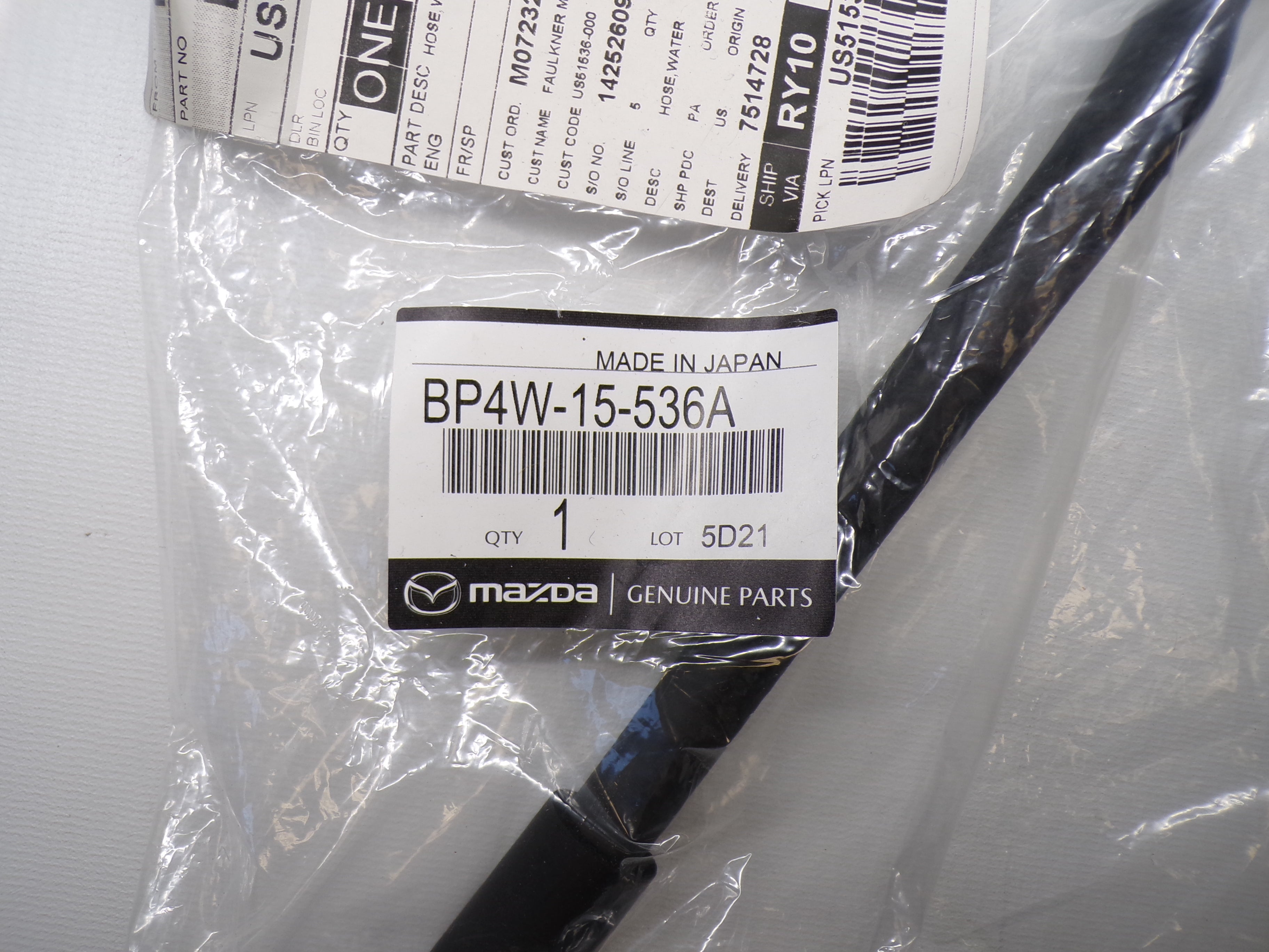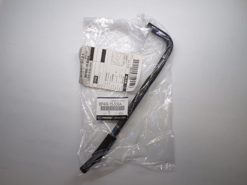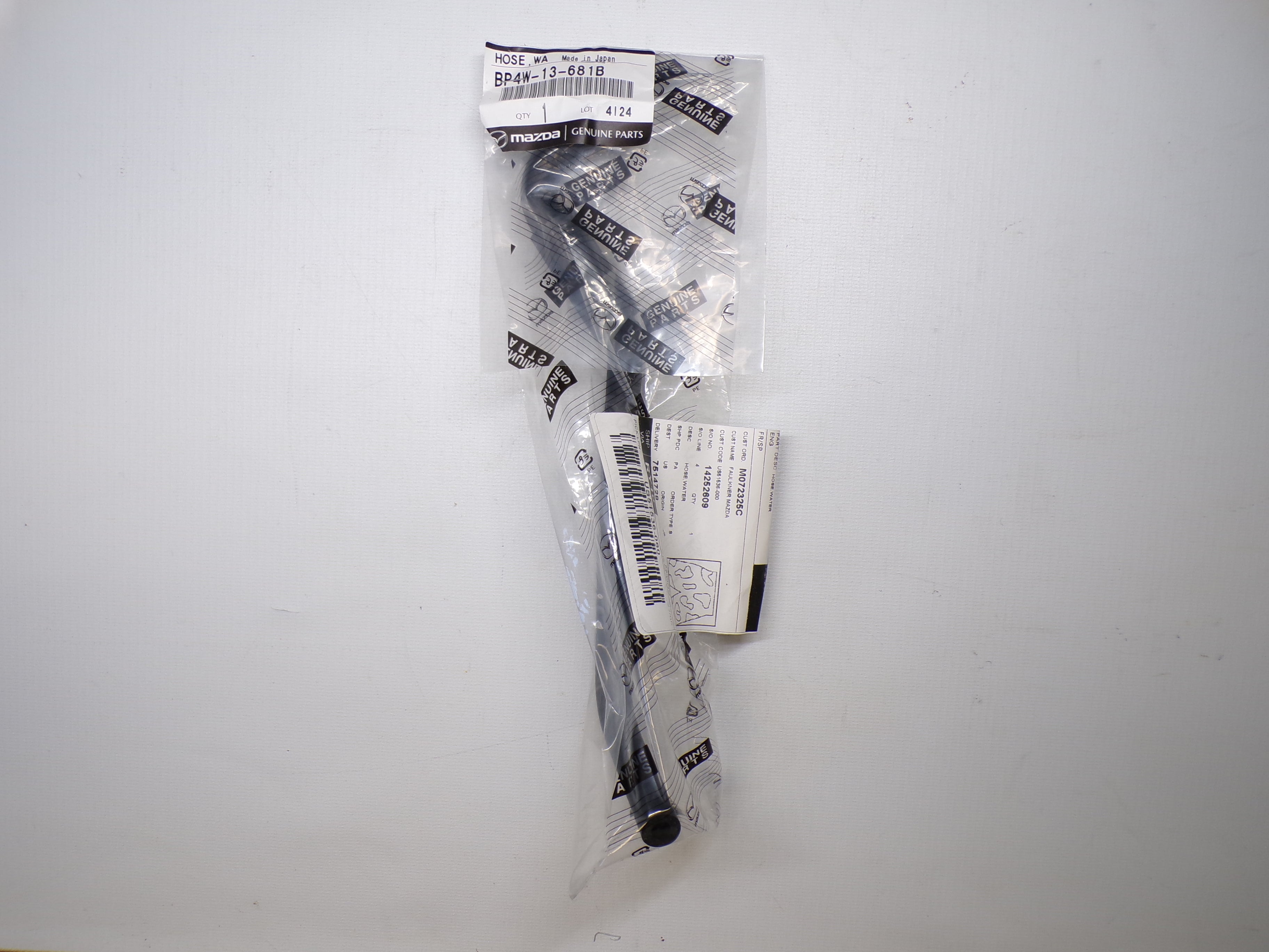 New factory Mazda OEM 1.8 liter engine oil cooler coolant hose for NB Mazda Miata. This is one of the two hoses that carry coolant to and from the oil cooler to cool the oil inside. Part numbers BP4W-13-681B (between cooler and throttle body) and BP4W-15-536A (between cooler and back of the cylinder head). Hose clamps, oil cooler, oil feed threaded stud, and attachment nut not included. Fits 1999-2005. Sold individually as one hose. Choose hose type.