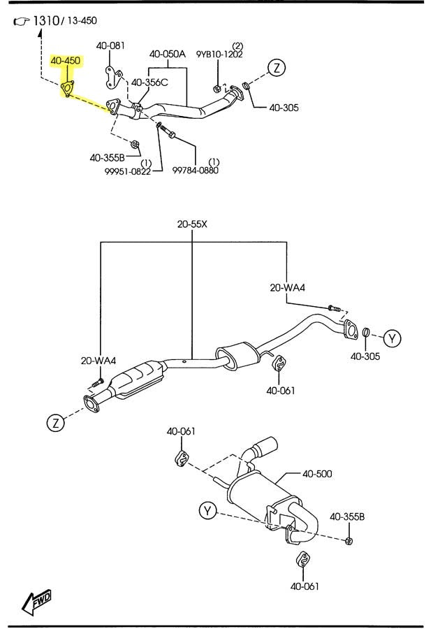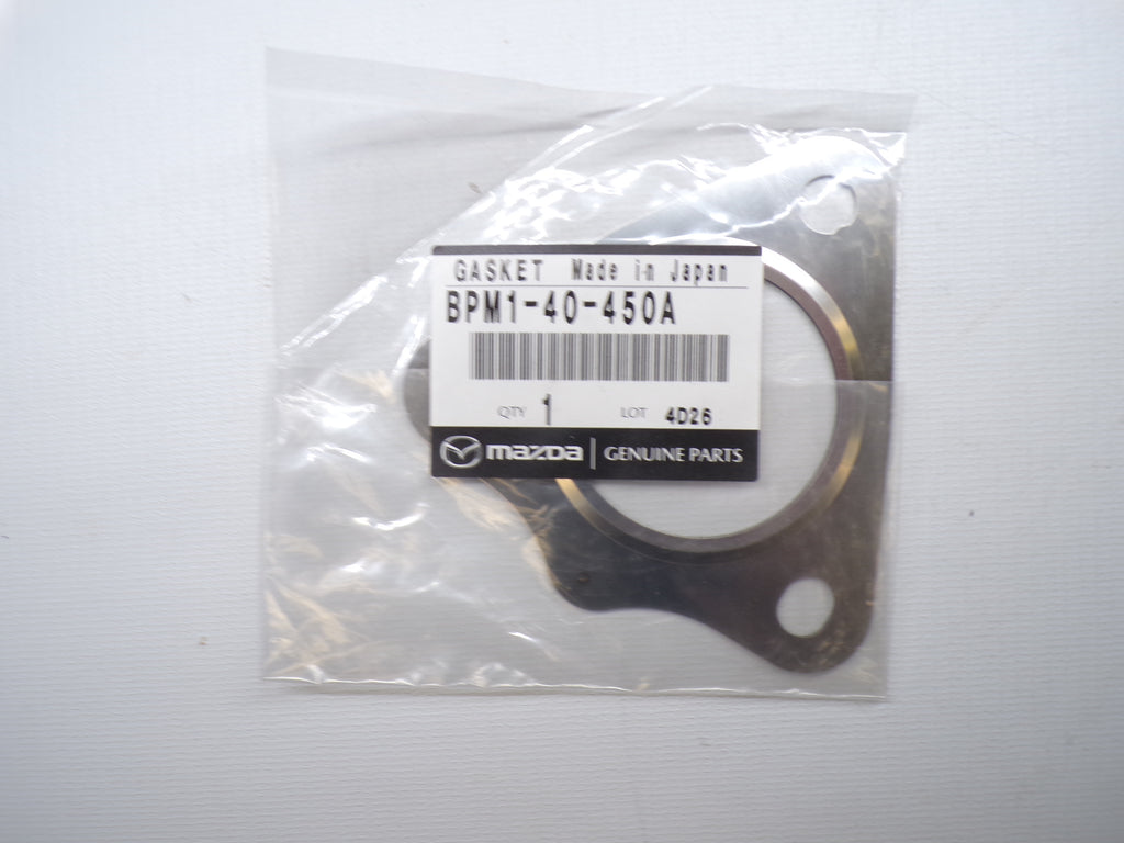 New factory Mazda OEM exhaust manifold and down pipe gasket for 1.8 liter engine for NB Mazda Miata. This is the triangle gasket that goes between the exhaust manifold and the down pipe. Also known as the exhaust header to downpipe gasket. Part number BPM1-40-450A. Fits 1999-2005.