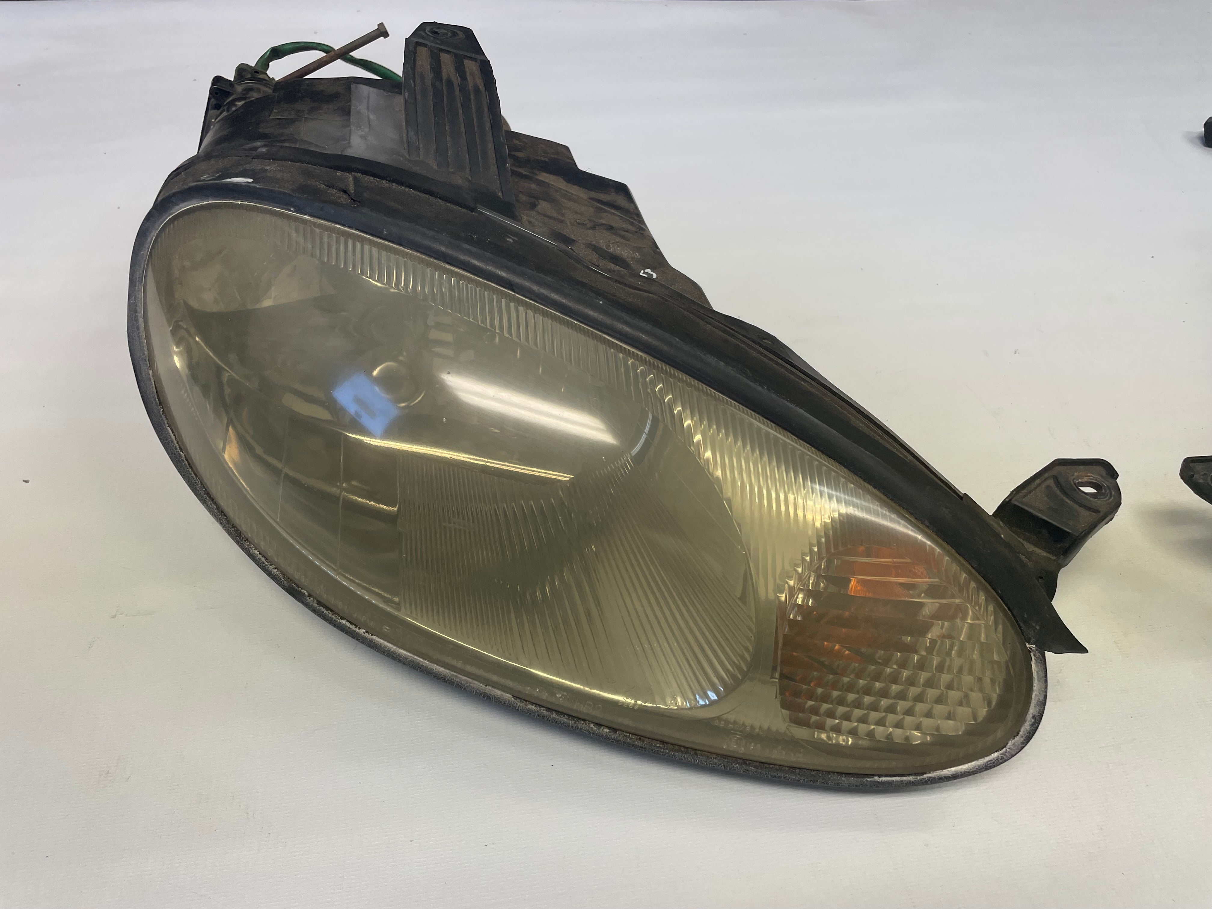 Used factory UK Version headlight assembly for Early NB Mazda Miata. This is either the driver or passenger side headlight that was factory on a Mazda Miata purchase in the United Kingdom. The headlight differs from the US Version in two ways. The headlight has an additional motor and wiring for an automatic headlight adjuster in addition to the manual bolt adjustment found on the US Version. The headlight also has a very small driving light bulb located at the bottom inside of the main bulb housing below the main headlight bulb. The extra bulb and extra adjusting motor can be left alone and not used. It is recommended to keep the extra bulb in place in order to seal the headlight from moisture. Fits 1999-2000. Sold individually as one headlight. Choose between driver side or passenger side.