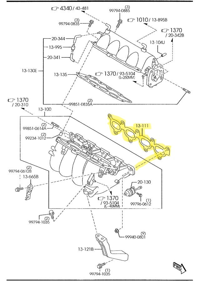 New factory Mazda OEM 1.8 liter engine intake manifold gasket for NB Mazda Miata. This is the gasket that goes between the intake manifold and the cylinder head. Part number BP4W-13-111. Fits 1999-2005.