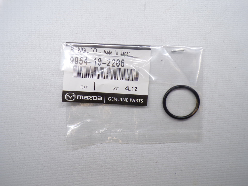 New factory Mazda OEM VVT actuator oil feed pipe to actuator o ring for Late NB Mazda Miata. This is o ring that goes between the metal top oil feed pipe and the variable valve timing actuator on the front passenger side of the valve cover. Rubber o-ring only. Part number 9954-10-2206. Fits 2001-2005. Sold individually as one o ring.