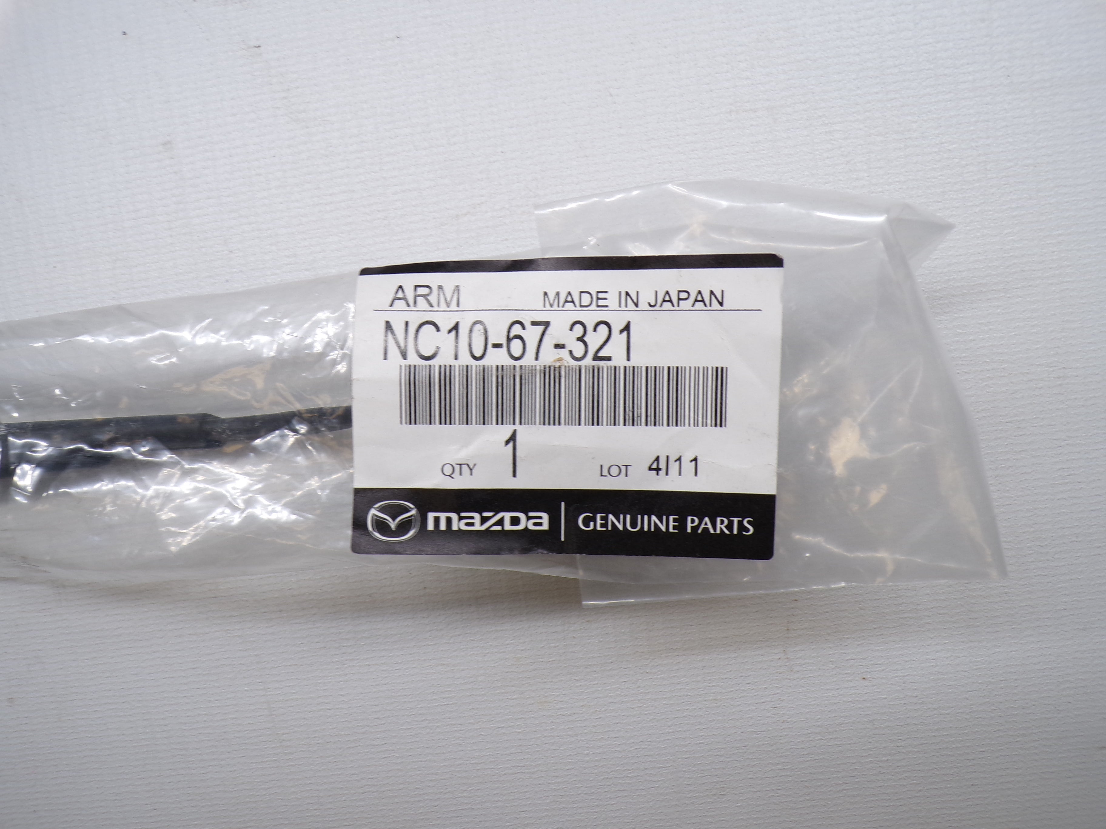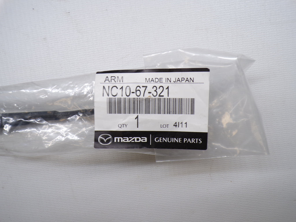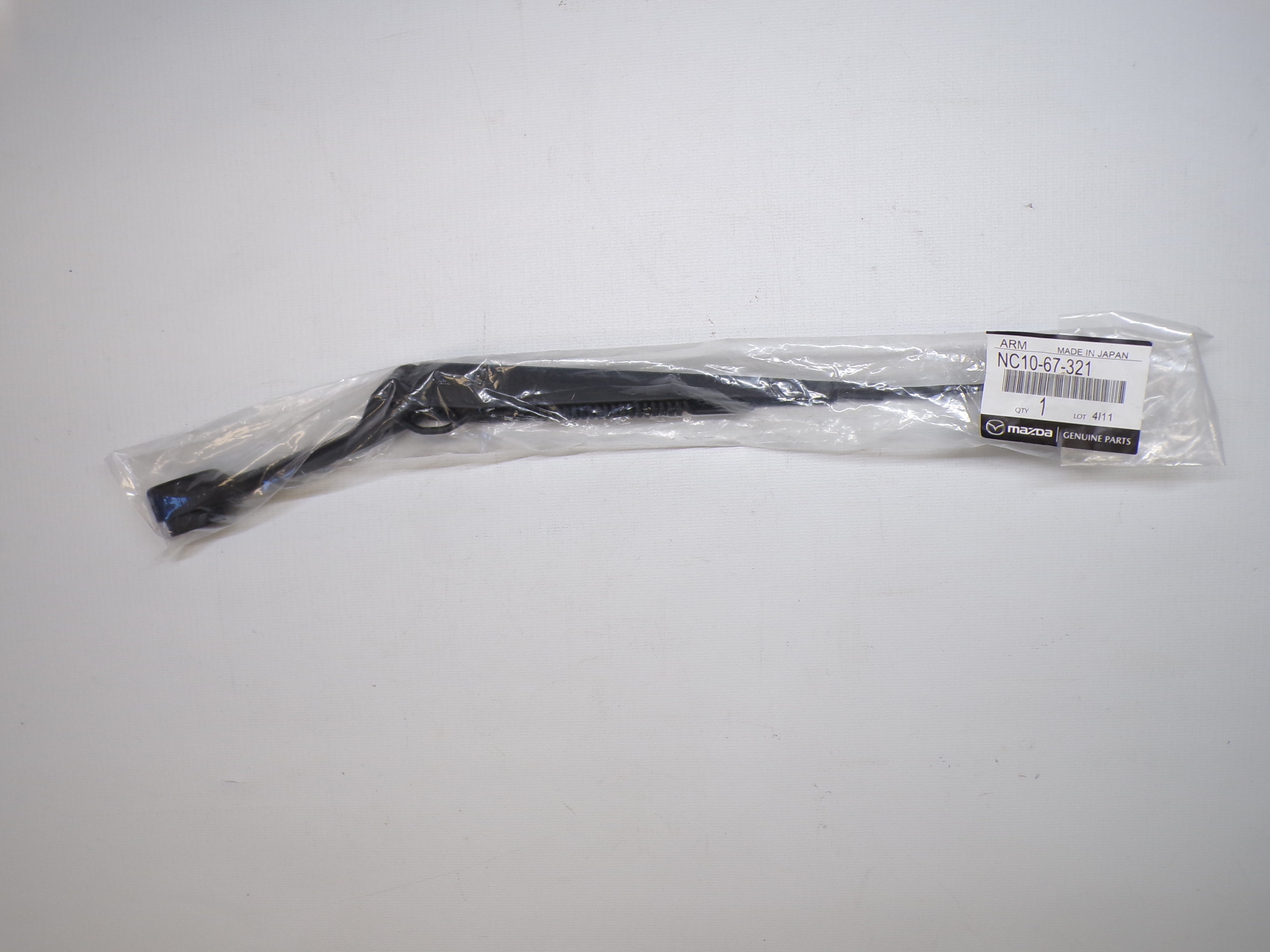 New factory Mazda OEM windshield wiper arm for NB Mazda Miata. Part numbers NC10-67-321 (driver side) and NC11-67-321 (passenger side). Hardware not included. Fits 1999-2005. Sold individually as one wiper arm. Choose between driver side or passenger side.