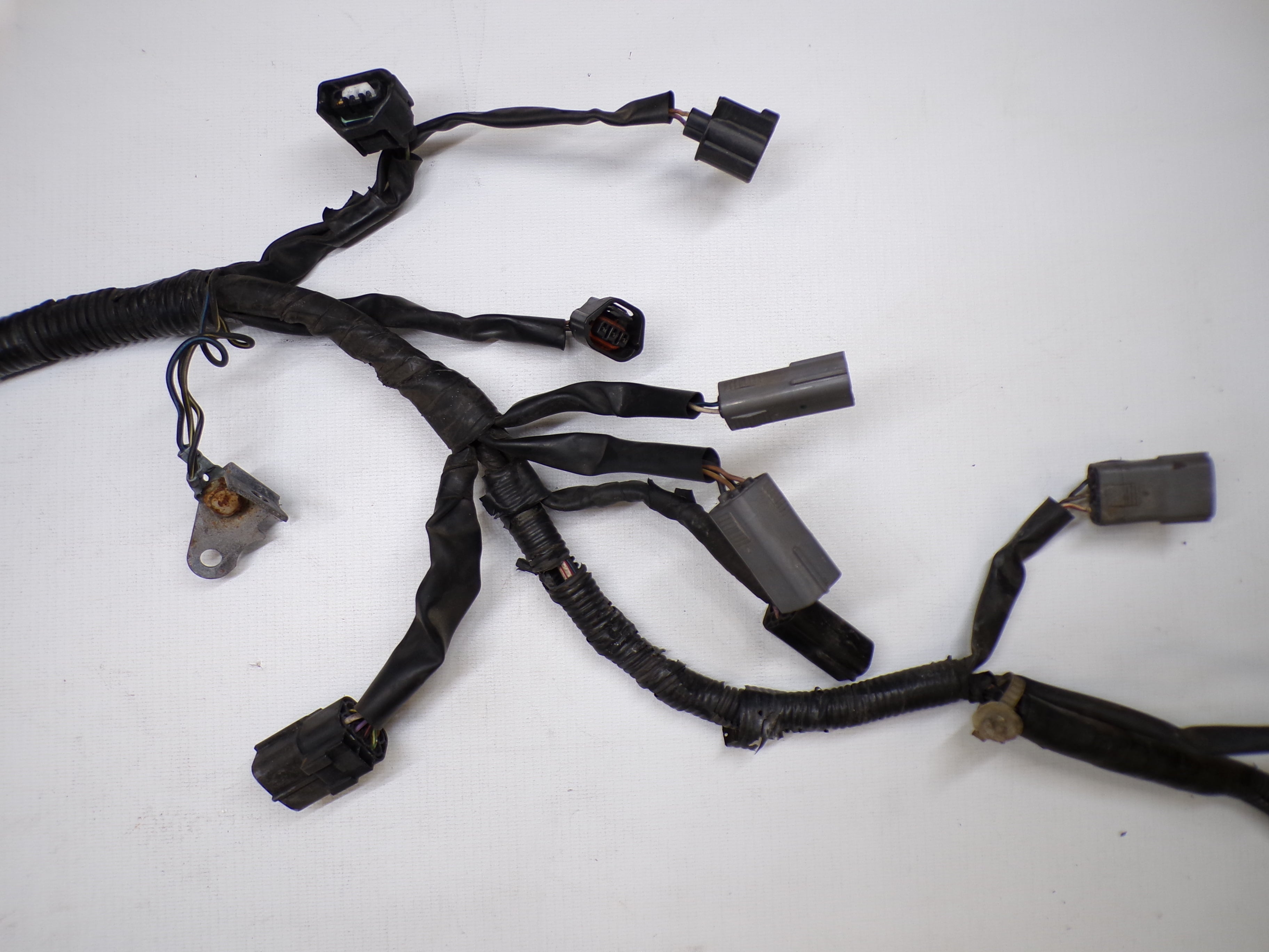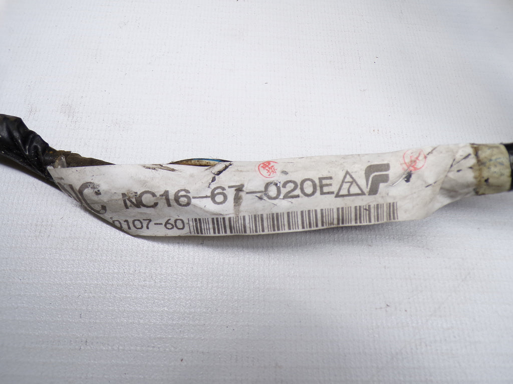 Used factory engine control unit wiring harness for Early NB Mazda Miata. This is the wiring harness that connects to the engine sensors on the engine and then goes through the firewall. This harness then connects to the engine control unit located under the dash on the driver side. Also known as the ECU wiring harness. Part numbers NC16-67-020E (manual transmission) or NC16-67-020D (automatic transmission). Fits 1999-2000. Choose type of transmission.